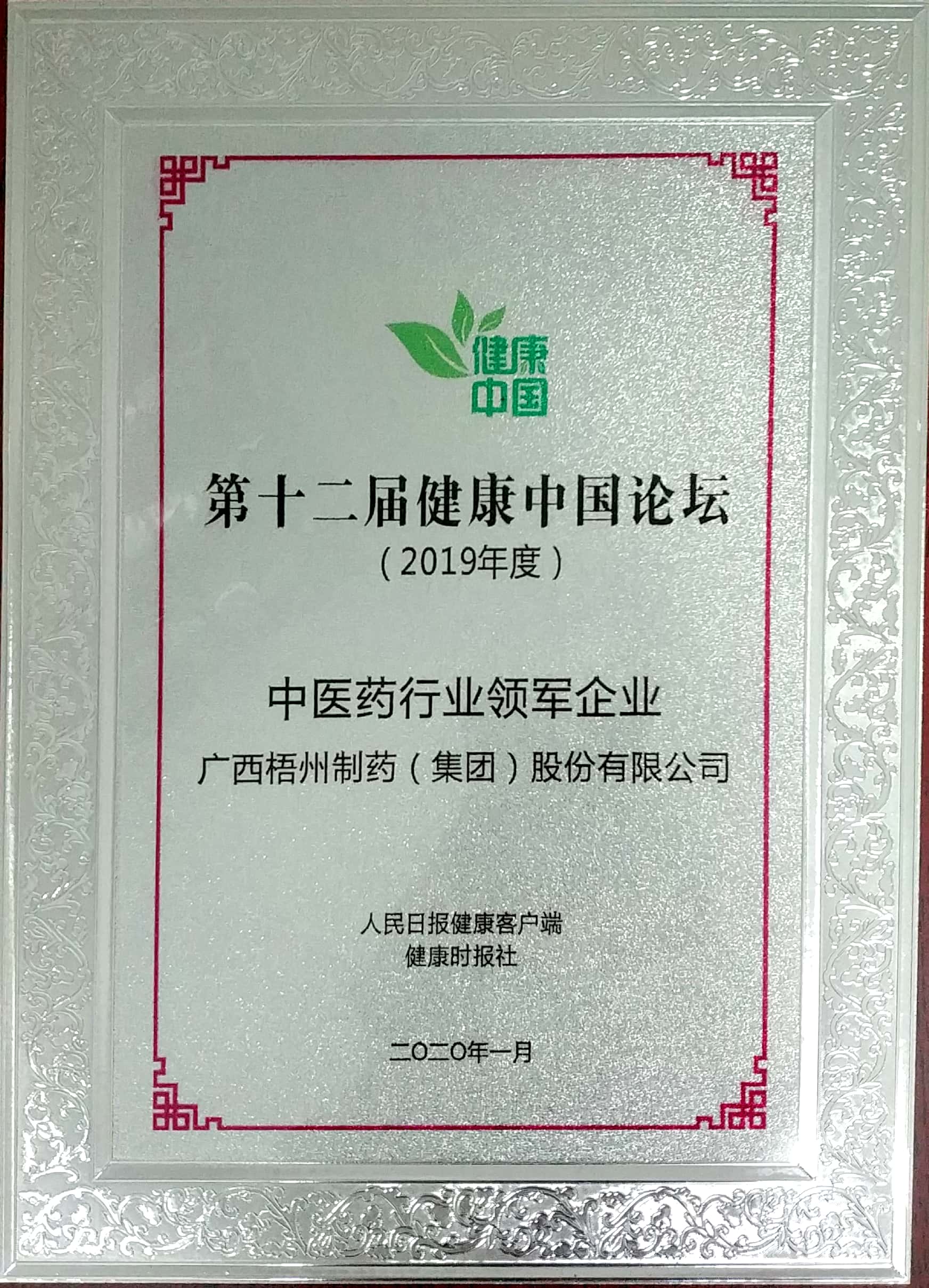 2019年度評(píng)為中醫(yī)藥行業(yè)領(lǐng)軍企業(yè)
