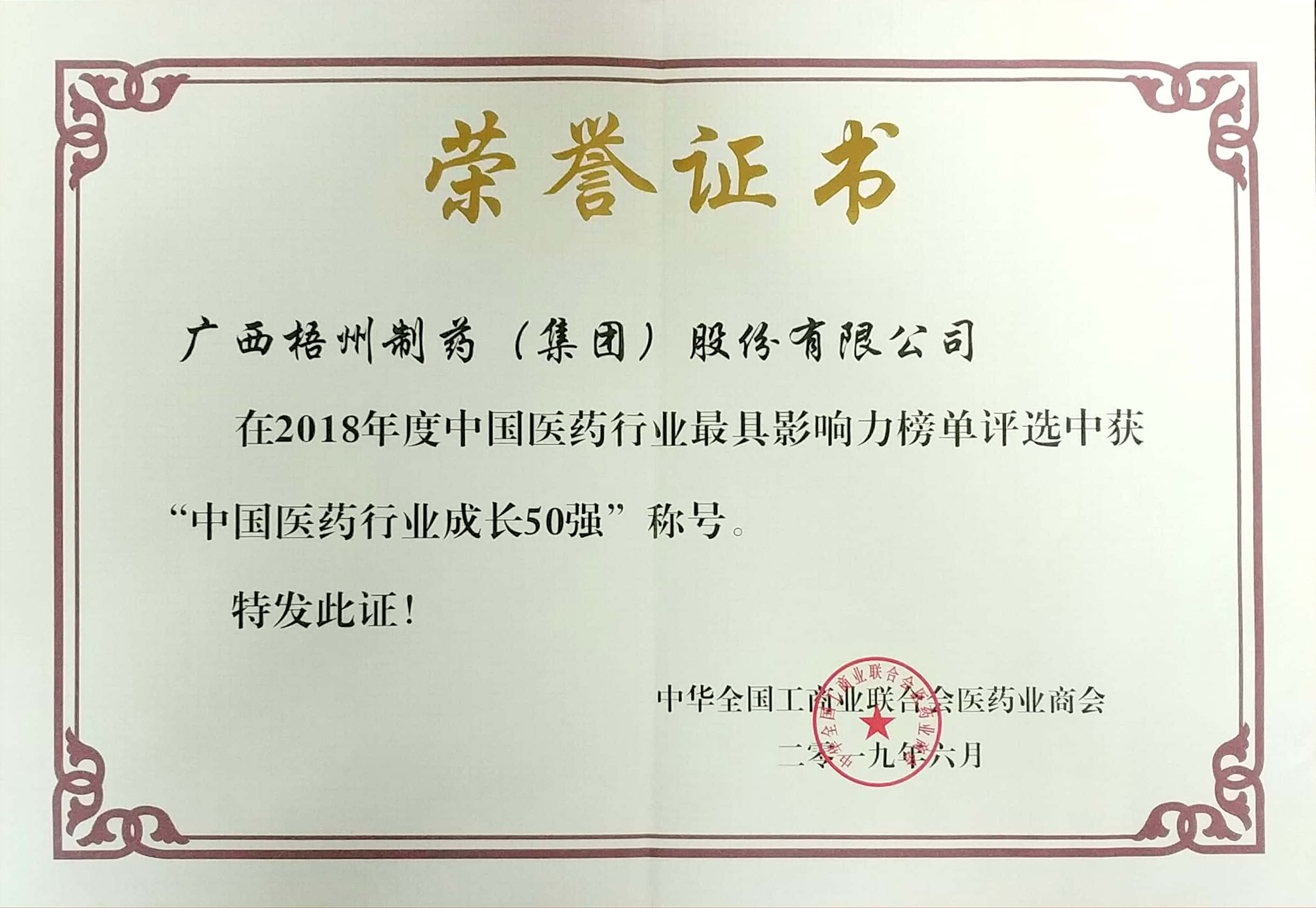 2018年度榮獲“中國(guó)醫(yī)藥行業(yè)50強(qiáng)稱(chēng)號(hào)”