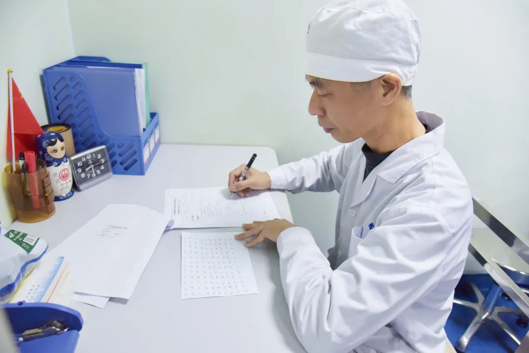 從細(xì)節(jié)看人品,這位被同事們尊稱“阿國師傅”的他,辦公桌面上各種書籍材料、業(yè)務(wù)規(guī)程、記錄文件永遠(yuǎn)都是堆疊有序;中檢專用操作間里,各種檢測(cè)試劑、設(shè)備儀器嚴(yán)格按定置管理,擺放得整整齊齊;他書寫的記錄文件,字跡工整,方正有力,點(diǎn)橫撇捺,一絲不茍,岸然如一幅硬筆書法。