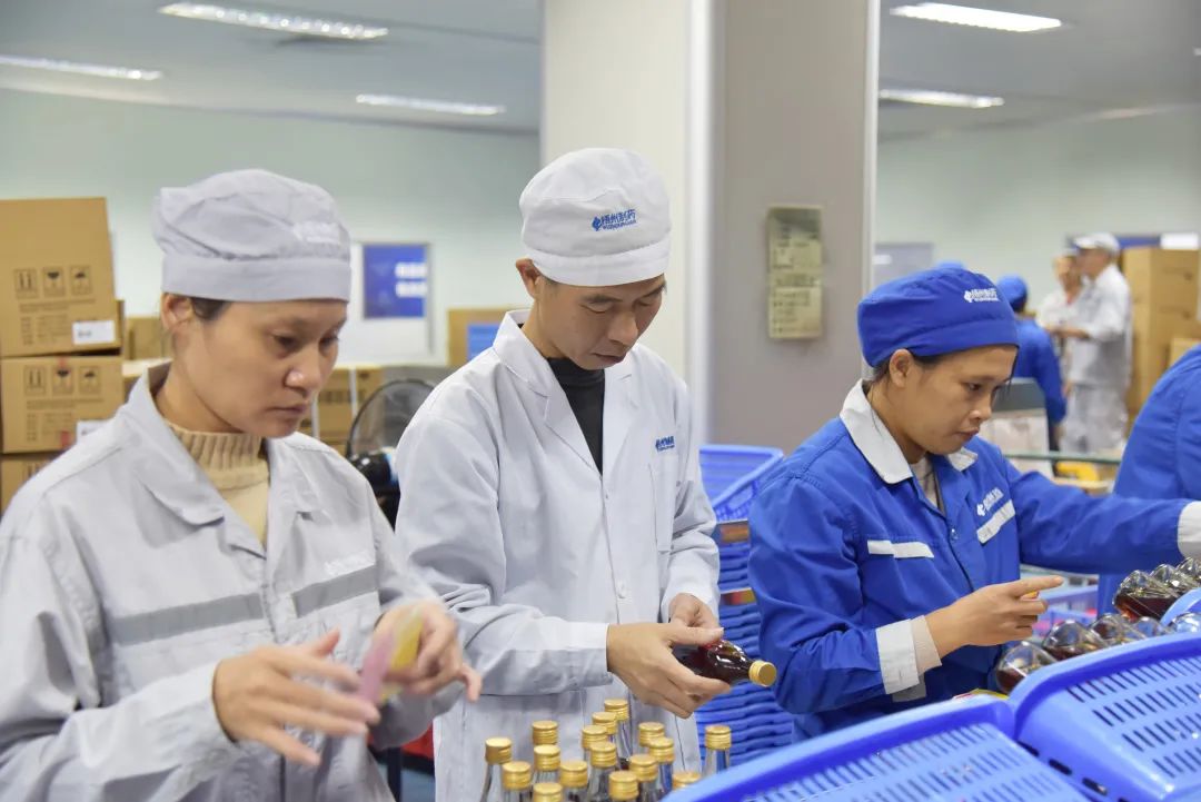 7:50配料開始,8:50灌裝間機(jī)器聲響起,9:00洗瓶間人員已經(jīng)忙碌而有條不紊工作起來,待前端各工序正常運(yùn)行后,他又往包裝區(qū)域巡場(chǎng),“阿嬌,這張產(chǎn)品合格證印得不太清楚,換一張吧?!薄皟蓚€(gè)批號(hào)不一樣的,阿炳你搬箱時(shí)注意一下?!薄靶氯顺鮼碚У?,對(duì)于包裝不熟手很正常,產(chǎn)品需要多抽檢,新人亦要多提醒?!倍嗄甑墓ぷ鹘?jīng)驗(yàn),讓他在巡檢中準(zhǔn)確快速地根據(jù)當(dāng)前狀態(tài)捕捉到質(zhì)量控制關(guān)鍵點(diǎn)。