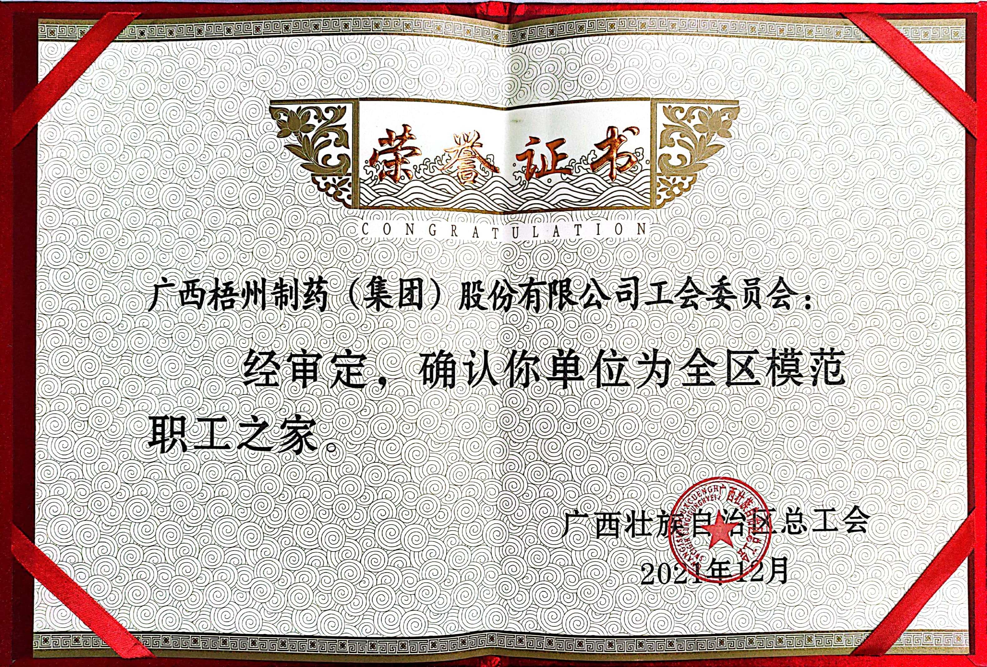 2021年榮獲全區(qū)模范職工之家稱號