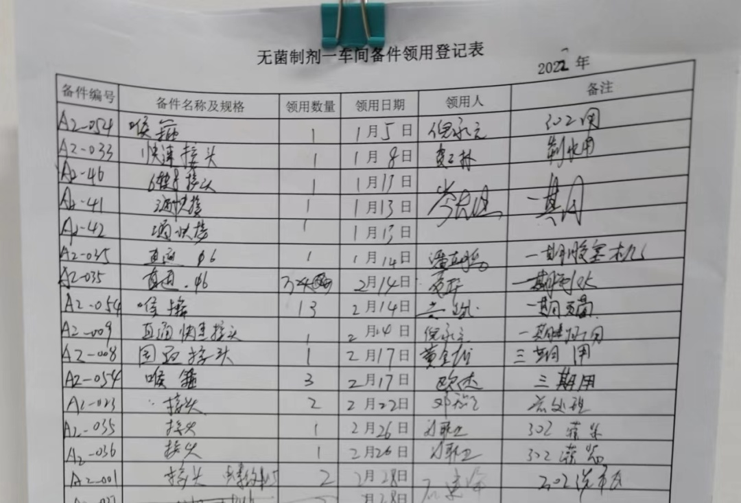 備件室7S管理已初步成形,但還有很大的提升空間。在現(xiàn)有改善成果的基礎(chǔ)上,團(tuán)隊(duì)成員致力于備件室管理規(guī)范化、信息化打造。原來備件物品的借用流程采用紙質(zhì)登記,該種方式存在記錄流程繁瑣、登記時(shí)間長、信息不明確等問題。針對該問題,備件室對A貨架試行草料小程序登記出入庫流程,提升領(lǐng)取備件的速度。