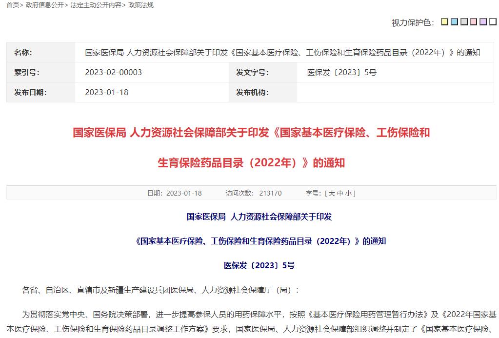 2023年1月18日,國家醫(yī)療保障局正式對外公布2022年《國家基本醫(yī)療保險、工傷保險和生育保險藥品目錄》,其中梧州制藥公司獨家生產(chǎn)的國家基藥——注射用血栓通(凍干)由2021年“限二級及以上醫(yī)療機(jī)構(gòu)的中風(fēng)偏癱或視網(wǎng)膜靜脈阻塞患者”調(diào)整為:“限二級及以上醫(yī)療機(jī)構(gòu)”。并于2023年3月1日起正式執(zhí)行。