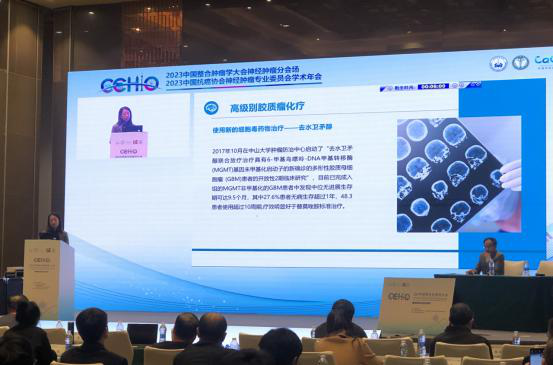 會(huì)上,中山大學(xué)腫瘤防治中心郭琤琤教授為注射用去水衛(wèi)矛醇納入《膠質(zhì)瘤化療中國(guó)專家共識(shí)》進(jìn)行詳細(xì)的解讀。她表示,去水衛(wèi)矛醇主要作用機(jī)制是由-鳥嘌呤DNA烷化,具有不受MGMT影響,對(duì)膠質(zhì)瘤細(xì)胞增殖有較高抑制率,血腦屏障(BBB)通過率較高等優(yōu)點(diǎn)?!叭ニl(wèi)矛醇聯(lián)合放療治療具有-甲基鳥嘌呤-DNA甲基轉(zhuǎn)移酶 (MGMT)基因未甲基化啟動(dòng)子的新確診的多形性膠質(zhì)母細(xì)胞瘤 (GBM)患者的開放性2期臨床研究”項(xiàng)目顯示:MGMT非甲基化的GBM患者中發(fā)現(xiàn)中位無進(jìn)展生存期可達(dá)9.5個(gè)月,其中27.6%患者無病生存超過1年,48.3%患者使用超過10周期。為醫(yī)師在臨床應(yīng)用中提供更多的依據(jù),有機(jī)會(huì)提高M(jìn)GMT非甲基化的膠質(zhì)瘤患者療效,增加患者生存獲益。
