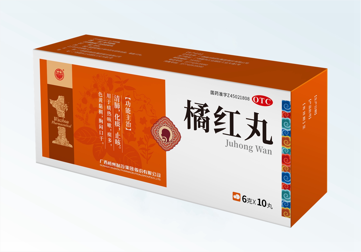 【藥品名稱】通用名稱:橘紅丸漢語拼音:JuhongWan【成份】化橘紅、陳皮、半夏(制)、茯苓、甘草、桔梗、苦杏仁、炒紫蘇子、紫菀、款冬花、瓜蔞皮、浙貝母、地黃、麥冬、石膏。輔料為蜂蜜?!拘?nbsp