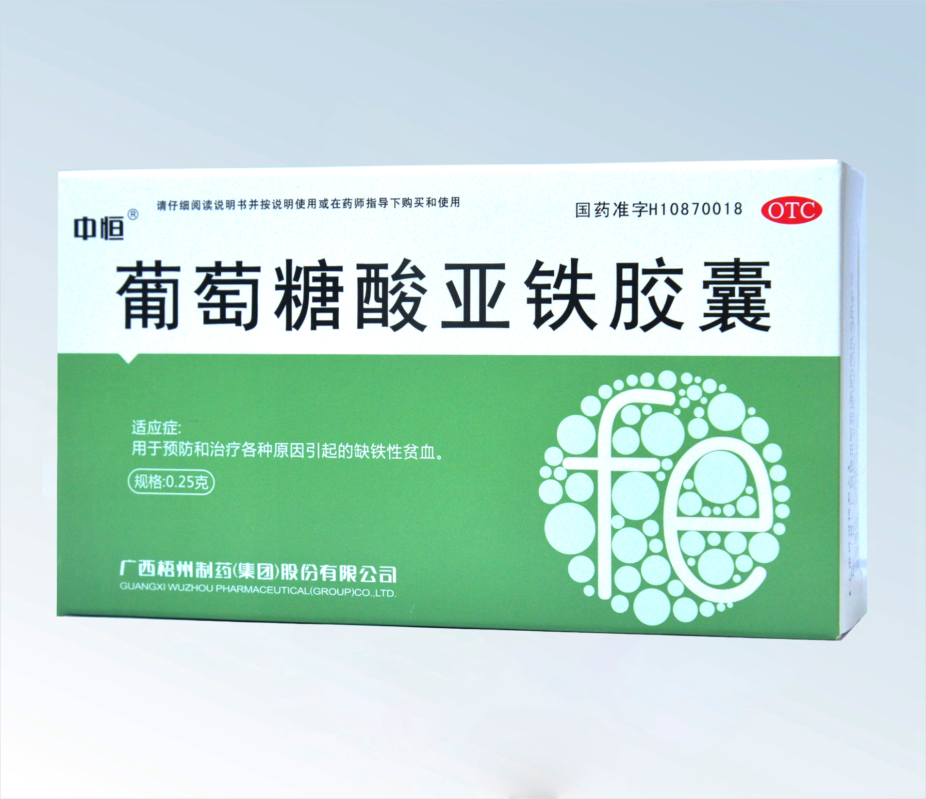 藥品成分本品每粒含葡萄糖酸亞鐵0.4克。 輔料為二氧化硅、硬脂酸鎂。 分 子 式:C12H22FeO14·2H2O功能主治用于治療各種原因引起的缺鐵性貧血。產(chǎn)品優(yōu)勢(shì)中恒牌、效果好