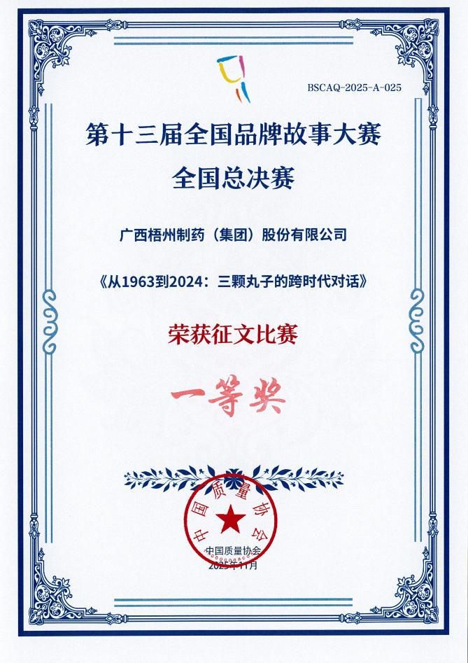 近日,以“創(chuàng)新賦能高質(zhì)量發(fā)展,品牌引領(lǐng)可持續(xù)未來”為主題的第十三屆全國品牌故事大賽全國總決賽圓滿落幕。廣西梧州制藥(集團)股份有限公司選送的作品《從1963到2024:三顆丸子的跨時代對話》,憑借深厚的品牌底蘊、創(chuàng)新的敘事表達以及對中醫(yī)藥傳承創(chuàng)新的生動詮釋,在全國2000余家企業(yè)的近千件入圍作品中嶄露頭角,成功斬獲全國總決賽征文比賽一等獎。