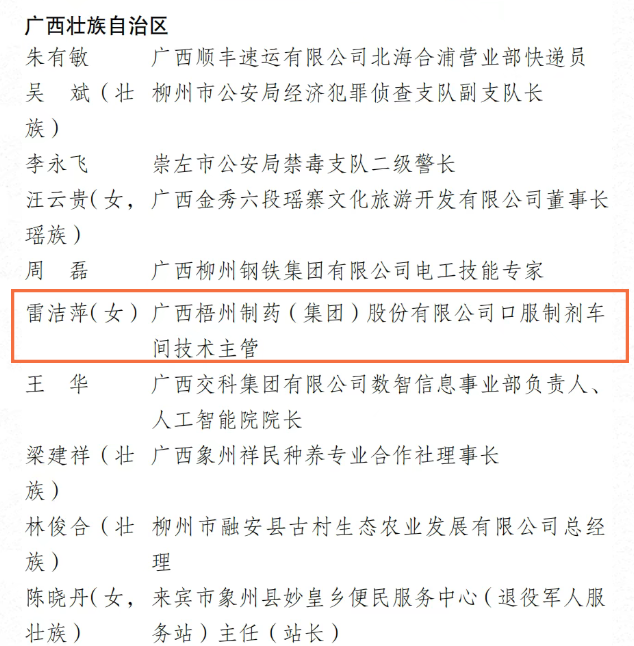 雷潔萍(女) 廣西梧州制藥(集團(tuán))股份有限公司口服制劑車間技術(shù)主管