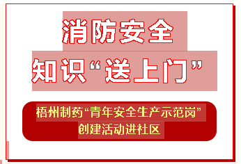 消防安全知識(shí)“送上門(mén)”梧州制藥“青年安全生產(chǎn)示范崗”創(chuàng)建活動(dòng)進(jìn)社區(qū)近日,梧州制藥青年員工積極參與“中恒集團(tuán)青年安全生產(chǎn)示范崗”創(chuàng)建工作,不但注重將創(chuàng)建活動(dòng)與日常班組生產(chǎn)工作有機(jī)融合,還結(jié)合今年第23個(gè)全國(guó)安全