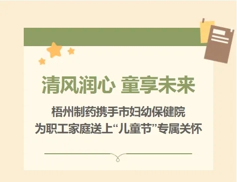清風潤心 童享未來梧州制藥攜手市婦幼保健院為職工家庭送上“兒童節(jié)”專屬關(guān)懷在六一國際兒童節(jié)來臨之際,梧州制藥與梧州市婦幼保健院攜手,共同策劃了一場別開生面的“清風潤心 童享未來”主題活動。為100多組職工家庭