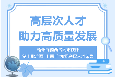 梧州制藥兩名同志獲評(píng)第十批廣西“十百千”知識(shí)產(chǎn)權(quán)人才榮譽(yù)高層次人才助力高質(zhì)量發(fā)展近日,自治區(qū)市場(chǎng)監(jiān)管局公布第十批廣西“十百千”知識(shí)產(chǎn)權(quán)人才名單,廣西梧州制藥(集團(tuán))股份有限公司副董事長、總經(jīng)理劉洋同志獲“A